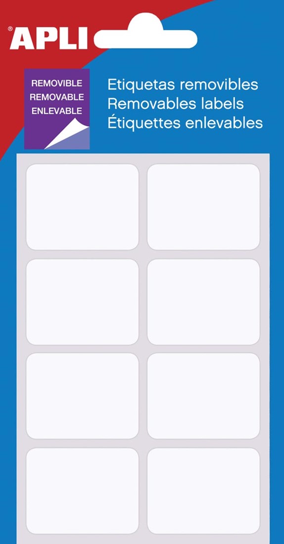 Artikelomschrijving Apli afneembare witte etiketten ft 25 x 40 mm (b x h), 56 stuks, 8 per blad (1895), etui van 7 blad