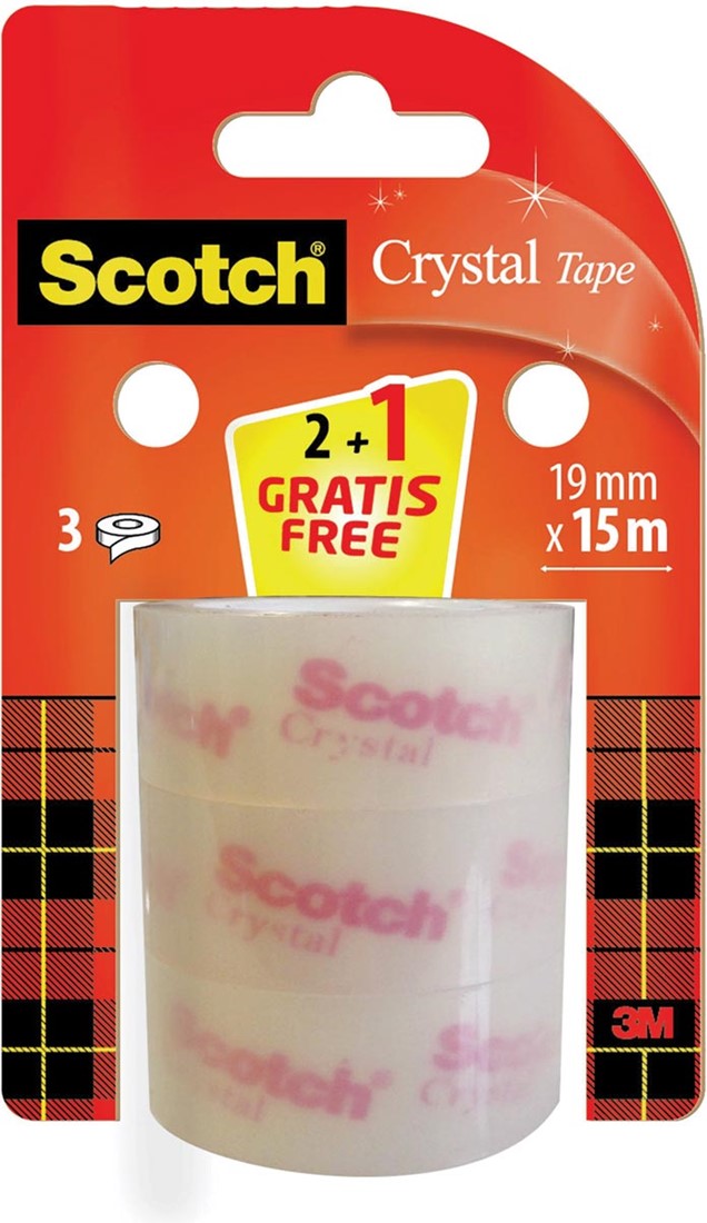Artikelomschrijving Scotch Crystal tape, 19 mm x 15 m,2 rollen + 1 gratis
