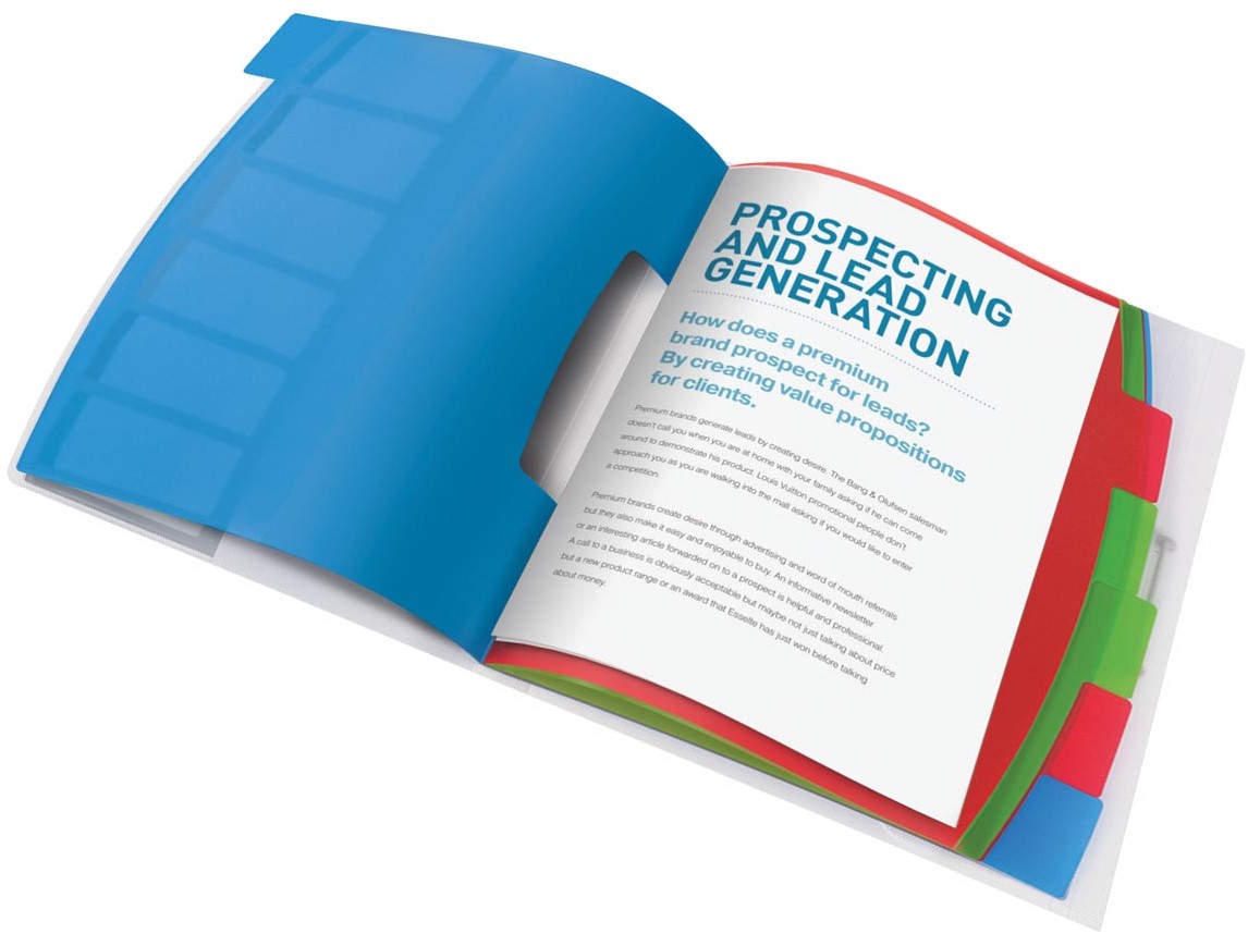 Voor ft A4. 3 kleppen aan achterzijde van omslag om inhoud veilig op te bergen. Mooie structuur dankzij nieuw bedrukt motief. Verwijderbare index op voorzijde van de omslag. Met rugetiket.