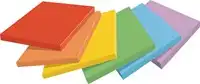 Blok van 90 memoblaadjes. Pak van 6 blokken. Geassorteerde kleuren: ultrarood, oranje (vital orange), ultrageel, groen (limeade green), blauw (paradise blue) en paars. Certificaat: PEFC