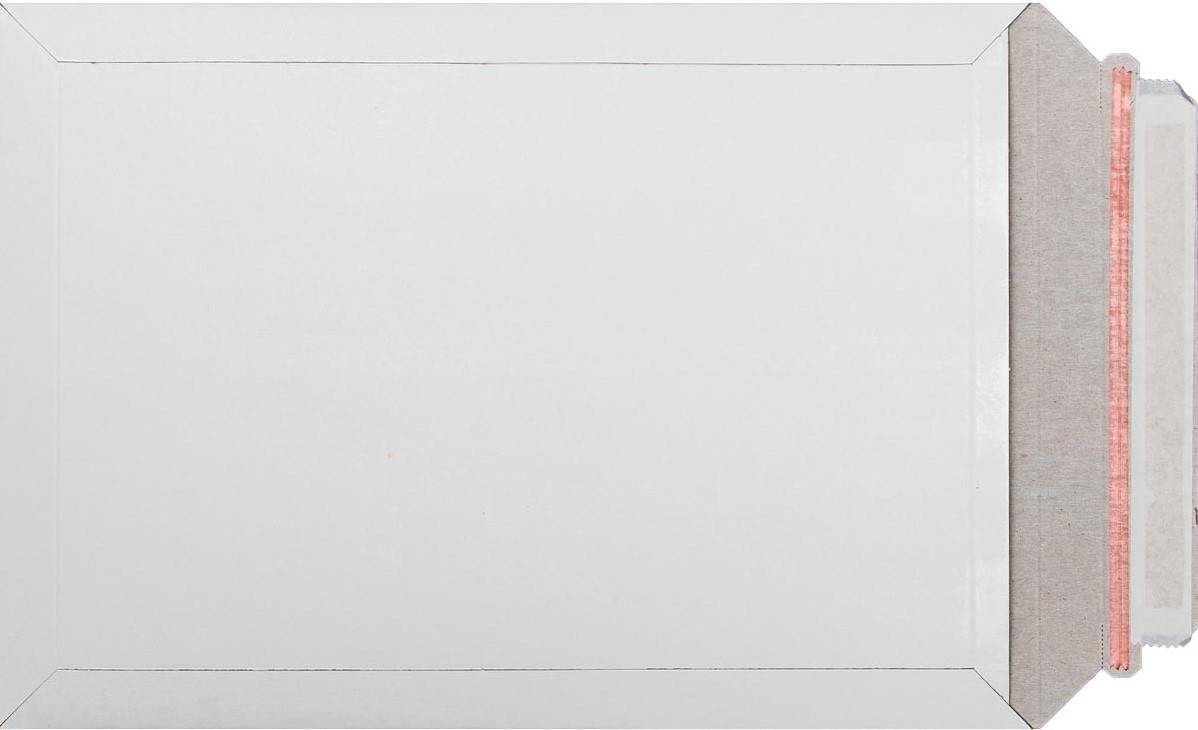 Uit wit massief karton van 450 g/m². Elegant en beschermend. Stripsluiting en tearstrip aan de korte zijde. Biedt een goede bescherming aan onregelmatig vormgegeven voorwerpen zoals rapporten, documenten en certificaten. Voor het verzenden van poststukkenmet extra volume die onbeschadigd moeten aankomen. Doos van 100 stuks.