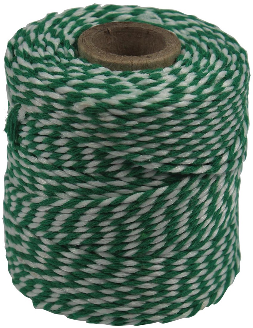 2-kleurig gedraaid katoentouw. 100 % natuurlijk. Zacht en soepel. Biologisch afbreekbaar. Niet geschikt voor contact met voeding. Op tube, verpakt in krimpfolie.