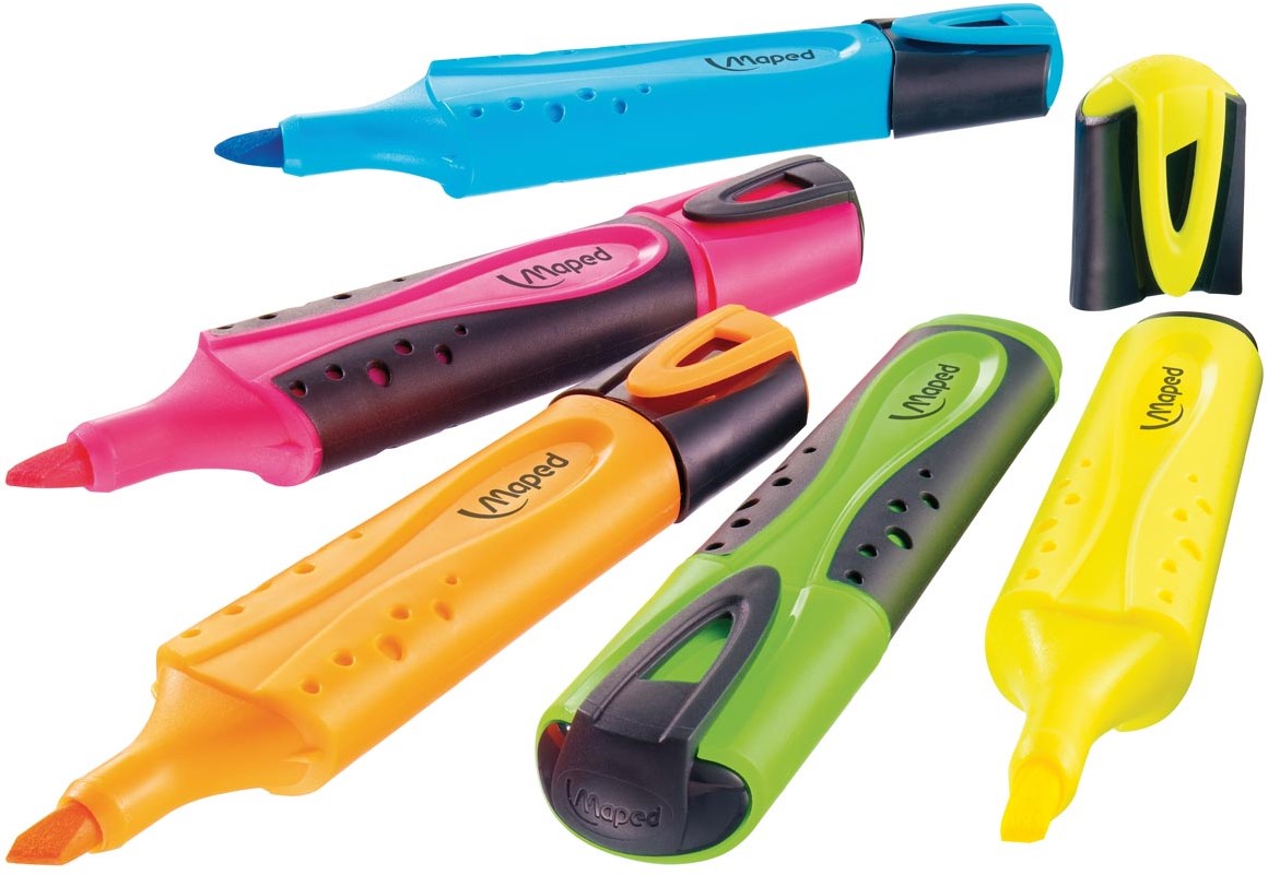 Artikelomschrijving Maped markeerstift Fluo'Peps Classic etui van 4 stuks: geel, oranje, roze en groen