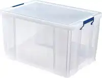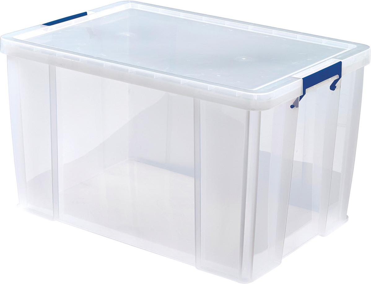 Artikelomschrijving Bankers Box opbergdoos 85 liter, transparant met blauwe handvaten, per stuk verpakt in karton