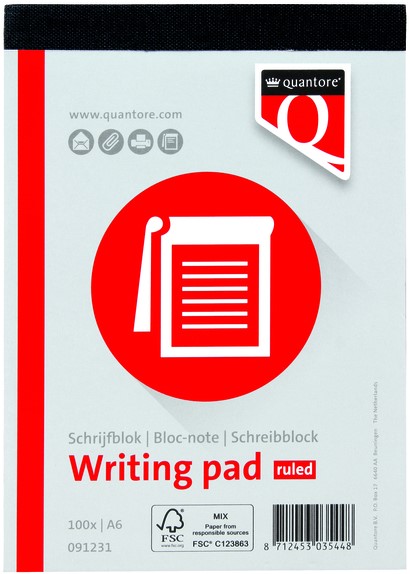 Stel een vraag over Schrijfblok Quantore A6 lijn 100vel 60 gr