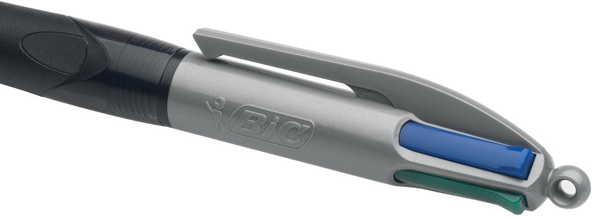 Artikelomschrijving Bic Colours Grip Pro 4-kleurenbalpen, medium, klassieke inktkleuren, lichaam donkergrijs