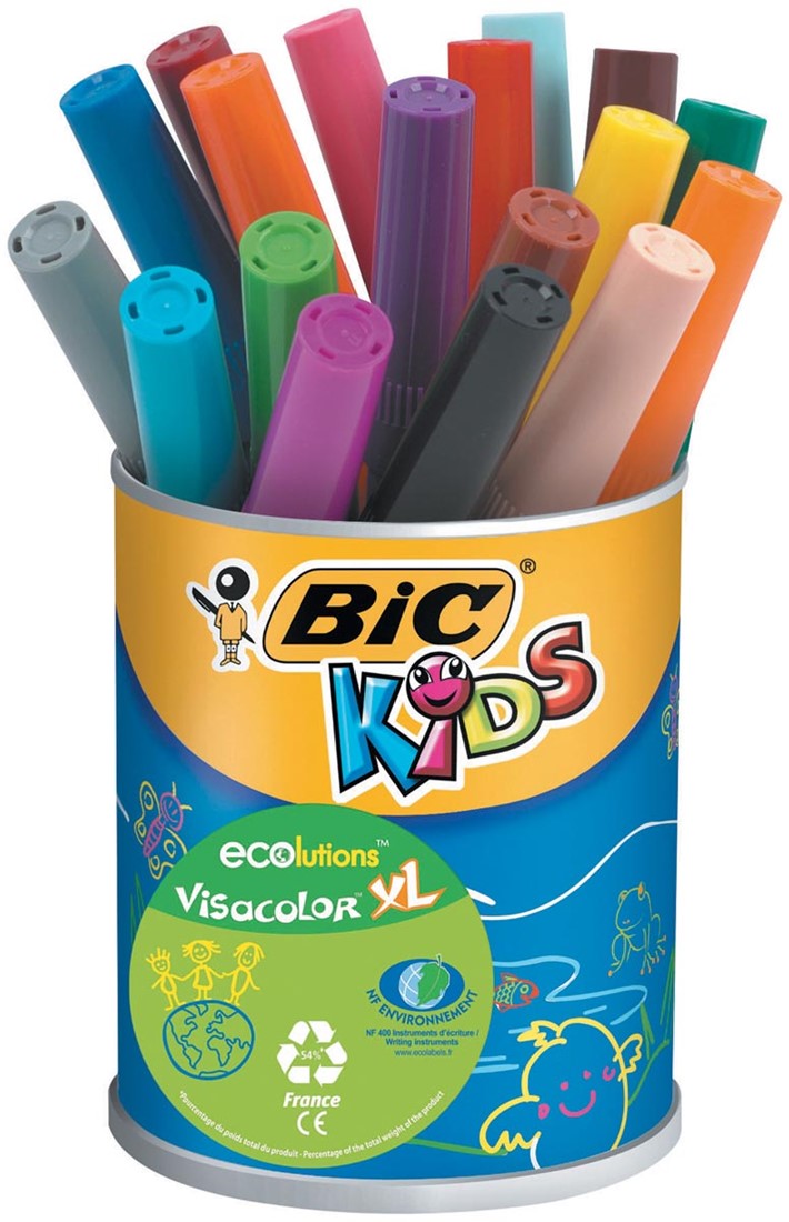 Stel een vraag over Bic Kids Viltstift Visacolor XL Ecolutions 18 stiften in een metalen pot