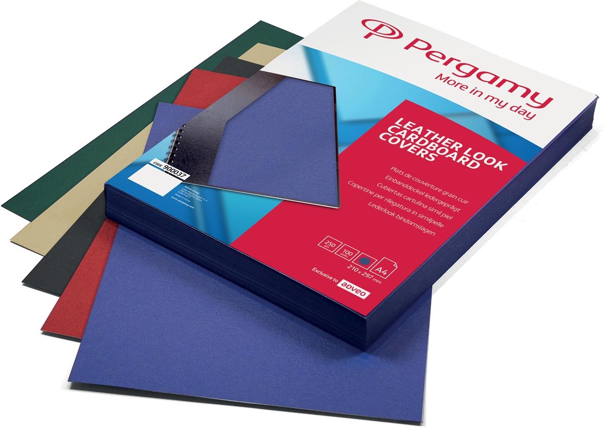 Artikelomschrijving Pergamy omslagen, ft A4, karton lederlook, 250 micron, pak van 100 stuks, rood
