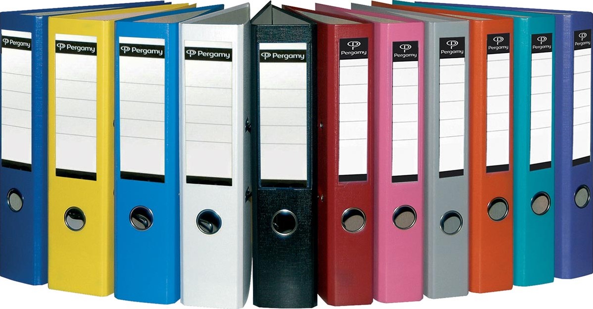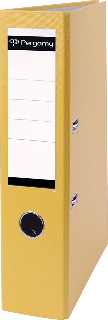 Artikelomschrijving Pergamy ordner, voor ft A4, uit PP en papier, zonder beschermrand, rug van 7,5 cm, geel