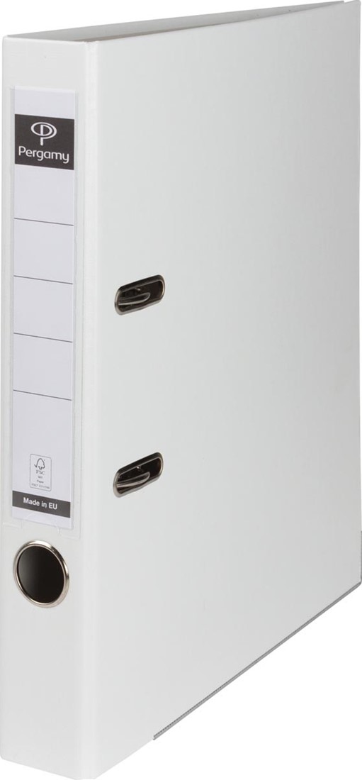 Artikelomschrijving Pergamy ordner, voor ft A4, uit PP en papier, met beschermrand, rug van 5 cm, wit