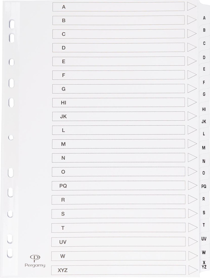 Stel een vraag over Pergamy tabbladen met indexblad, ft A4, 11-gaatsperforatie, A-Z met 20 tabs