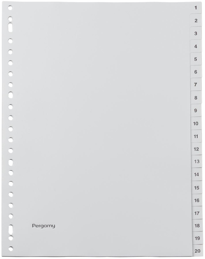 Stel een vraag over Pergamy tabbladen, ft A4, 23-gaatsperforatie, grijze PP, set 1-20
