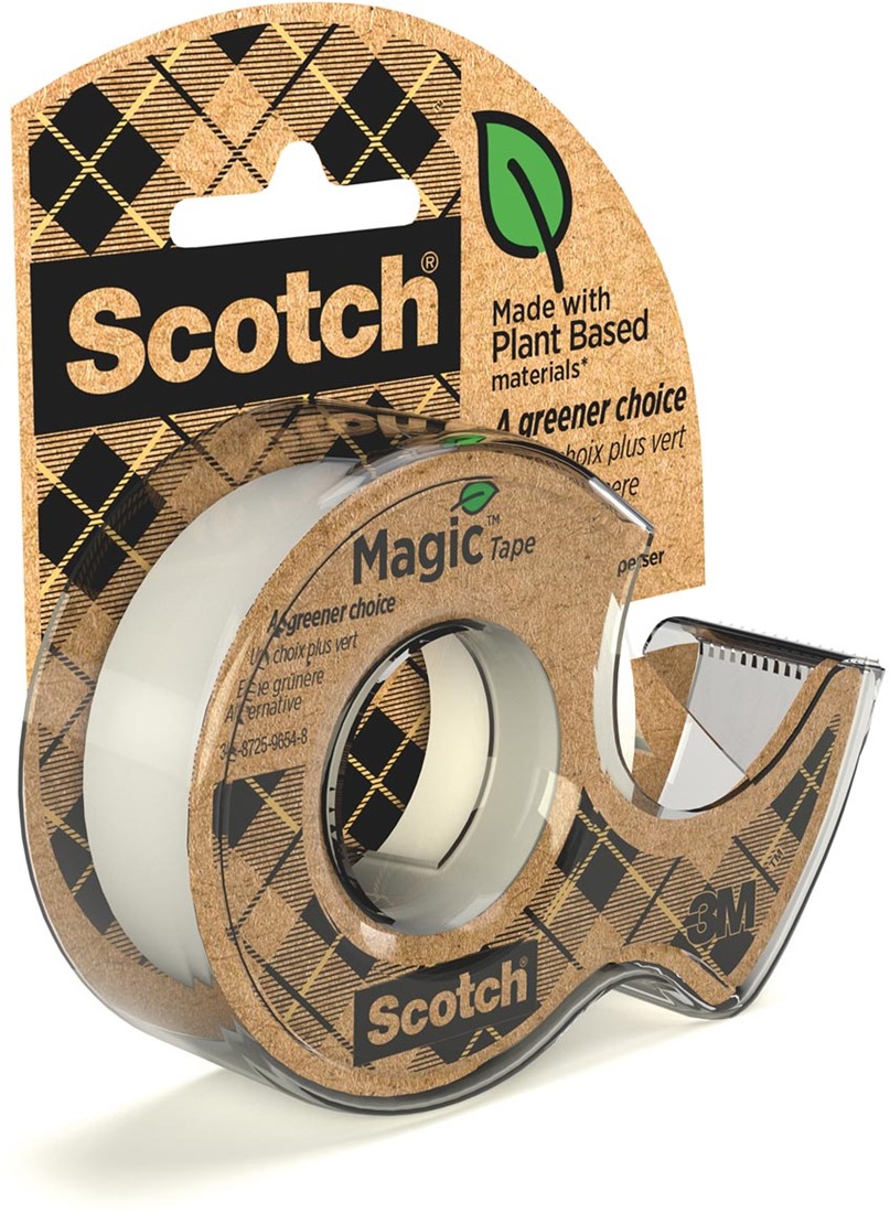 Artikelomschrijving Plakband Magic Tape A greener choice ft 19 mm x 15 m, op dispenser van 100 % gerecycleerd plastic