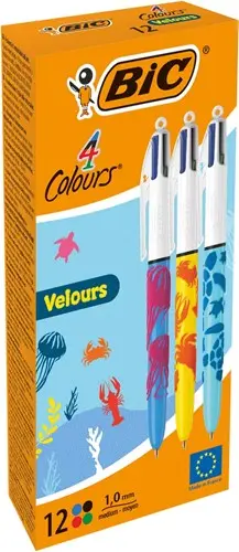 Stel een vraag over Bic Colours Velours 4-kleurenbalpen, medium, klassieke inktkleuren, doos van 12 stuks