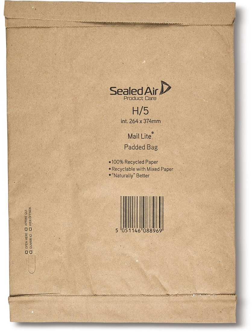 Specificaties Mail Lite Padded Bag enveloppen, bruin, H/5, 264 x 374 mm, doos van 50 stuks
