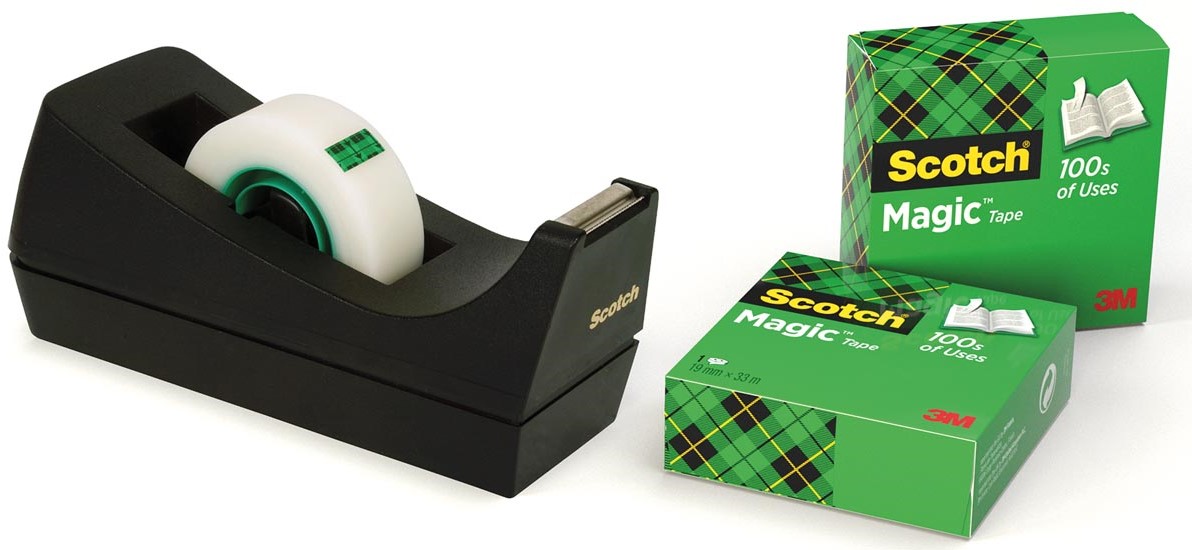 Plakbandhouder Scotch C38 recycled zwart + 3rol magic tape 900 19mmx33m