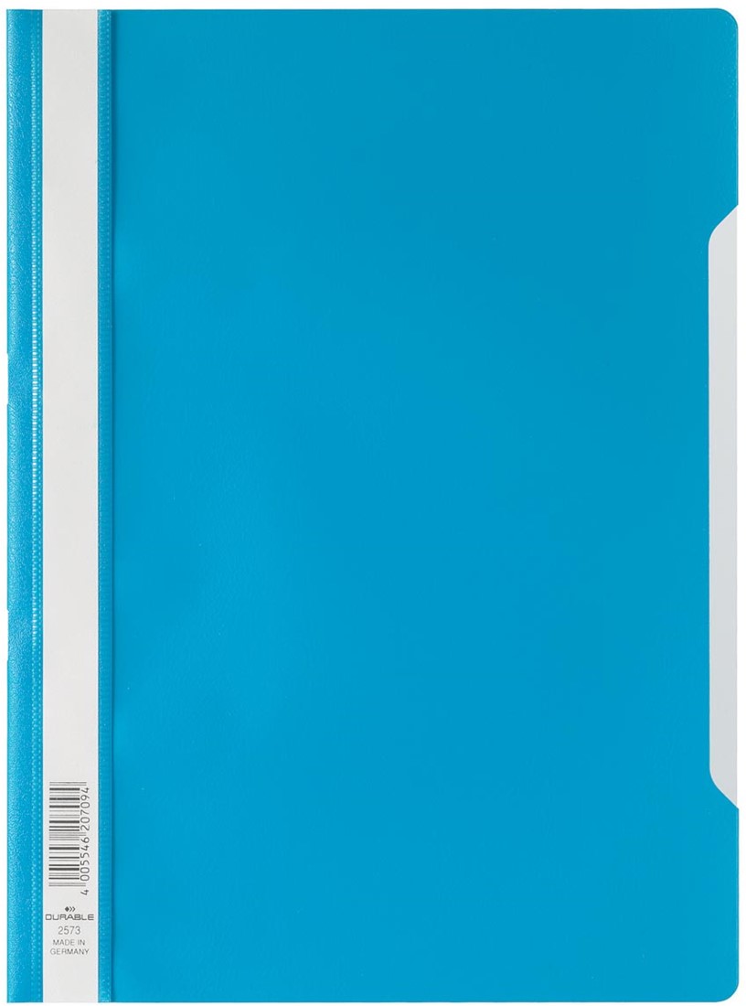 Map van standaard kwaliteit met doorzichtige voorzijde. Zichtsnelhechtmappen van DURABLE zijn ontworpen voor uiteenlopende toepassingen, zoals rapporten, offertes, notities en opslag van documenten. Ruime kleurkeuze en etiketteringsmogelijkheden. Kan worden uitgerust met een ordnerhechter (art.nr. 2996), om op te bergen in ringmappen. Specificaties: Voor ft A4 Uit PP Met transparant voorblad en etiketvenster over de gehele lengte Uitsnijding in de voorzijde om gemakkelijk te kunnen bladeren 100 %recycleerbaar