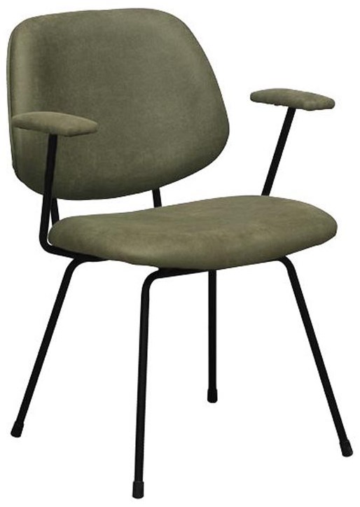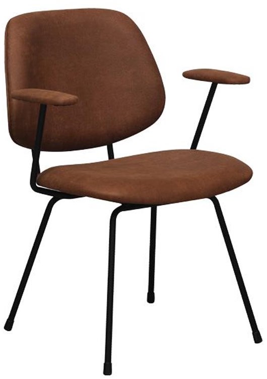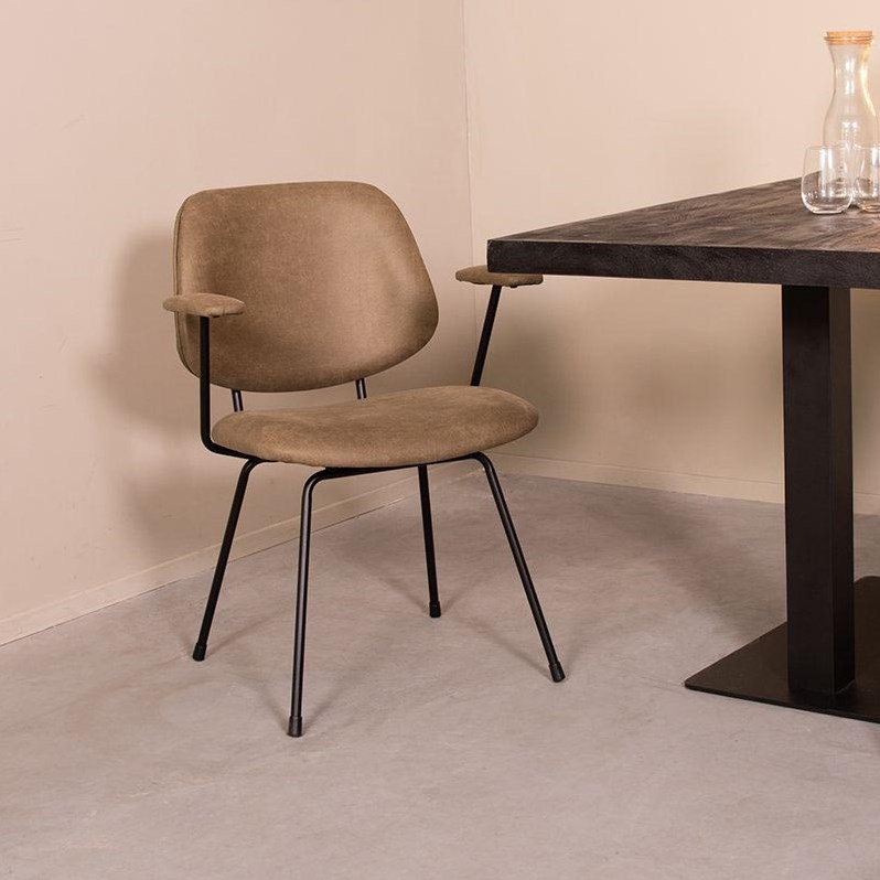De eetkamerstoel met armleuning River is een moderne en comfortabele stoel die moeiteloos past in zowel de eetkamer als een gezellige kantine inrichting. Door zijn stevige metalen onderstel in zwart en de taupe microsuede bekleding krijgt deze eetkamerstoel een stijlvolle en warme uitstraling. Dankzij het normale zitcomfort, de zachte schuimvulling en een zithoogte van 46 cm zit je altijd prettig, of je hem gebruikt als eetkamerstoel of kantinestoel. De stoel is handgemaakt, waardoor elk exemplaar een uniek karakter heeft.