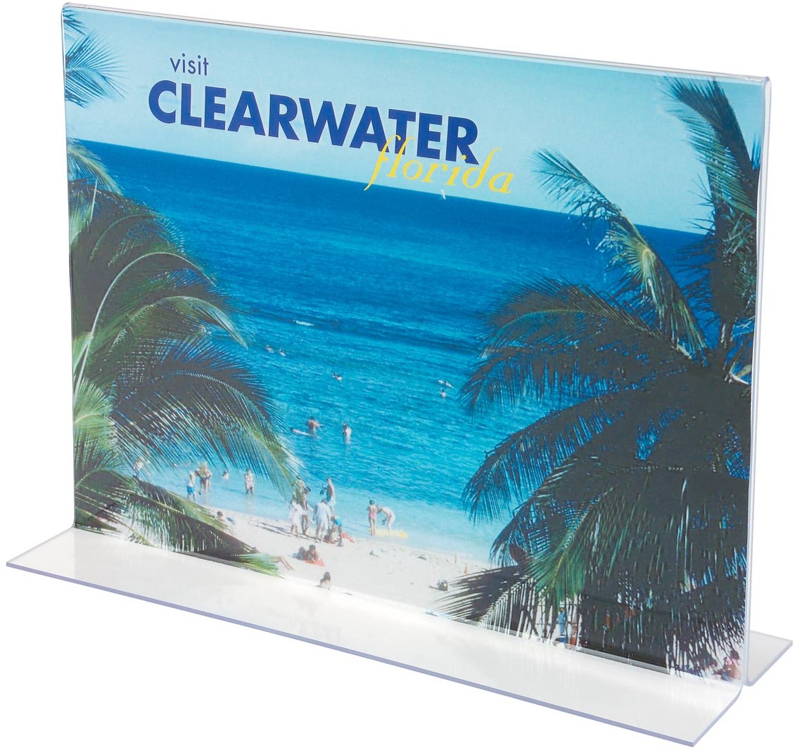 Uit transparante polystyreen. Tafelmodel voor informatie, menu, enz. Opening aan de onderzijde. Tweezijdig voor maximum visibiliteit. Grote en stabiele basis.