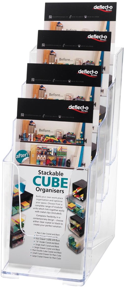 Artikelomschrijving Deflecto folderhouder ft 1/3 A4, 4 opbergvakken