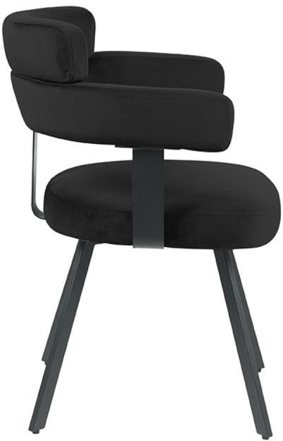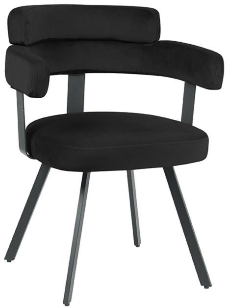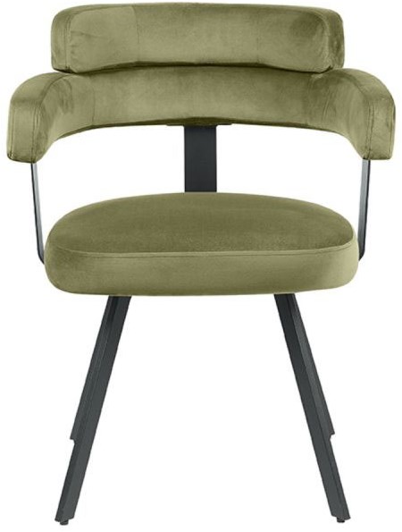Deze stijlvolle stoel is een comfortabele en moderne eetkamerstoel die dankzij de fluwelen bekleding een chique en zachte uitstraling heeft. De gebogen rugleuning en armleuningen zorgen voor een prettige ondersteuning, terwijl het zwarte metalen onderstel de stoel een eigentijdse en robuuste look geeft. Door de mooie kleuren en het tijdloze ontwerp past deze stoel moeiteloos in uiteenlopende interieurs. De stoel is ideaal als gezellige kantinestoel, maar komt ook uitstekend tot zijn recht in een vergaderruimte, wachtkamer of ontvangstruimte. Dankzij het comfortabele design is het een stoel waarop je gerust langere tijd kunt zitten.