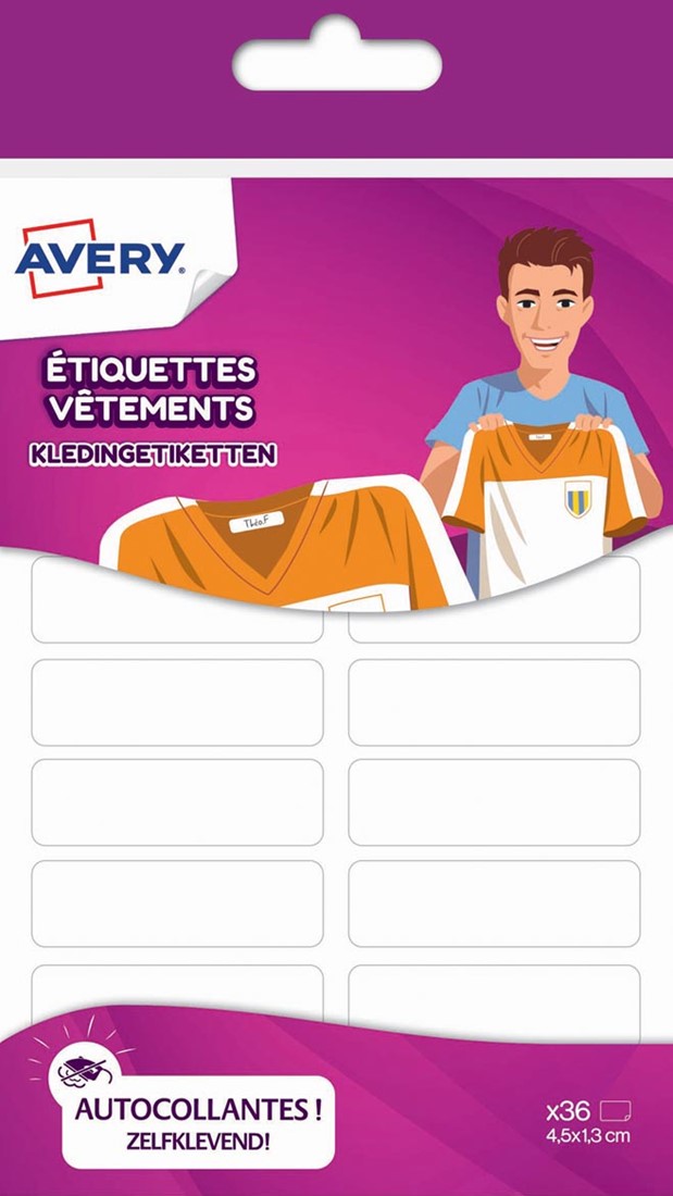 Artikelomschrijving Avery Family kledingetiketten, ft 4,5 x 1,3 cm, wit, ophangbare etui met 36 etiketten