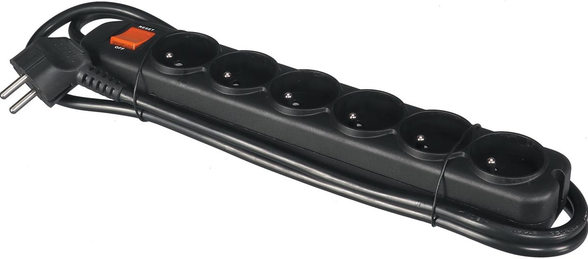 6 stopcontacten Met schakelaar Met overbelastingsbescherming Kabellengte: 1,5 m Max. vermogen: 3500 W Kleur: zwart Voor België