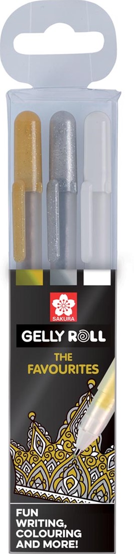 Artikelomschrijving Sakura roller Gelly Roll Mix, etui met 3 stuks (goud, zilver en wit)