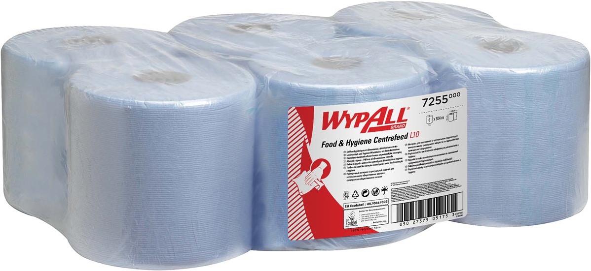 Artikelomschrijving Wypall reinigingsdoeken L10, 800 vellen per rol, pak van 6 rollen