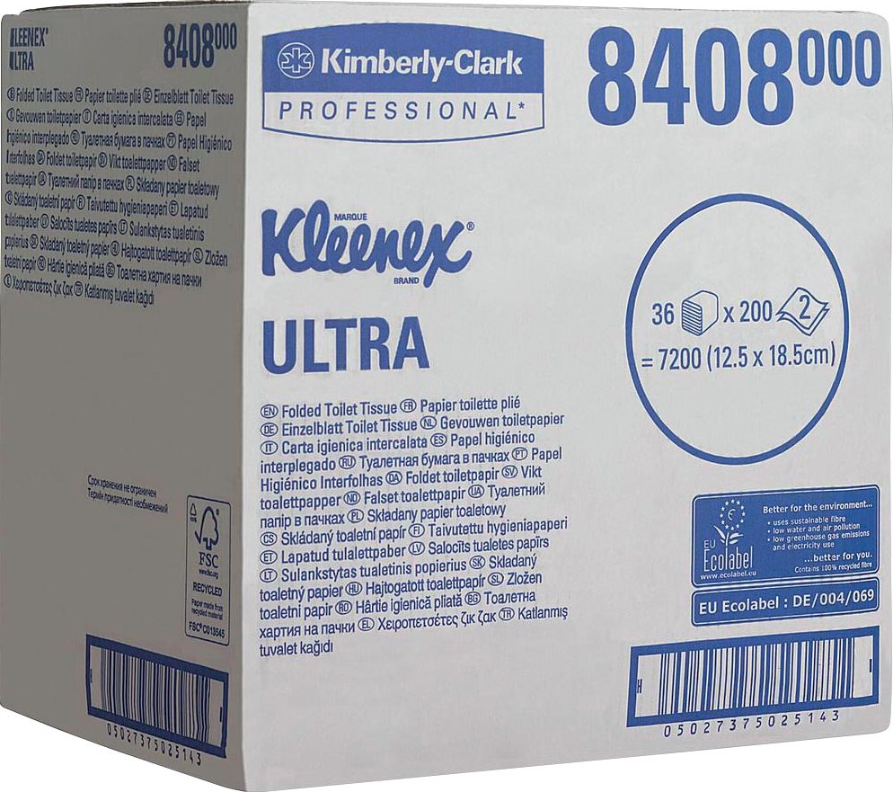 Artikelomschrijving Kleenex Ultra gevouwen toiletpapier, 2-laags