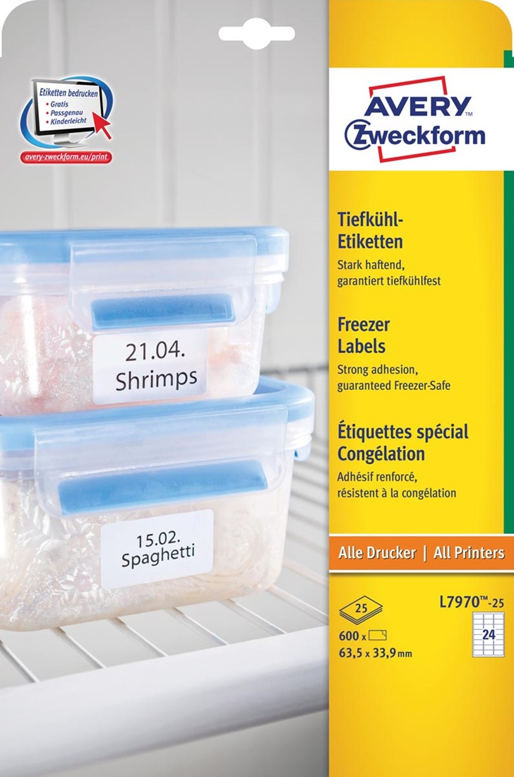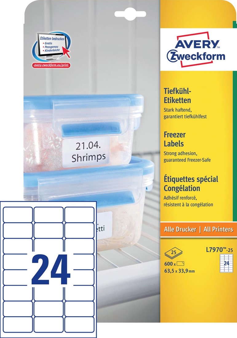 Artikelomschrijving Avery diepvriesetiketten Ft 63,5 x 33,9 mm (b x h), wit, doos van 600 etiketten
