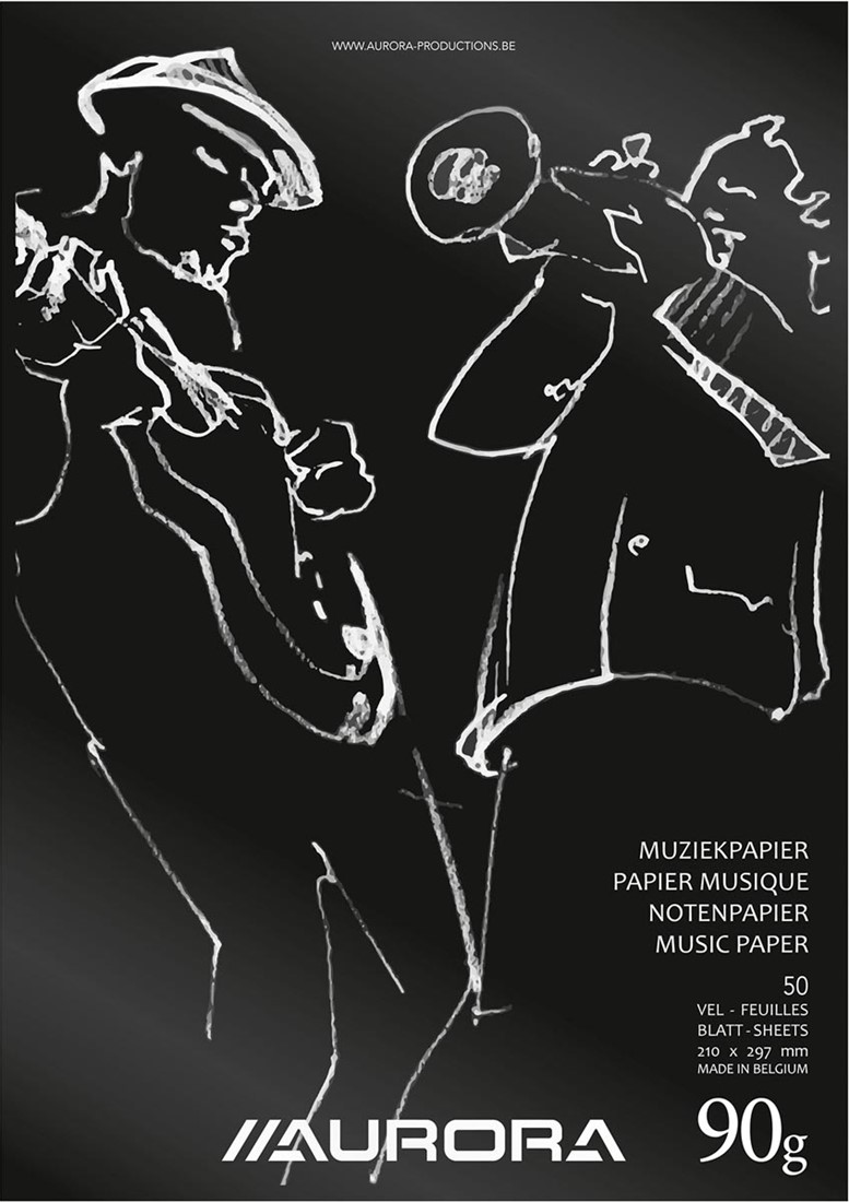 Ft 21 x 29,7 cm (A4). Wit houtvrij papier van 90 g/m². 100 bladzijden (50 vel).12 notenbalken.