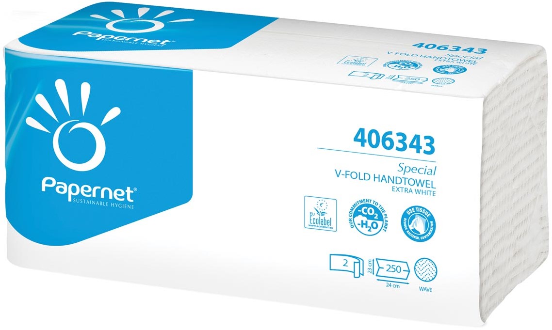 Accessoires Papernet papieren handdoeken Special, V-vouw, 2-laags, 250 vellen, extra wit