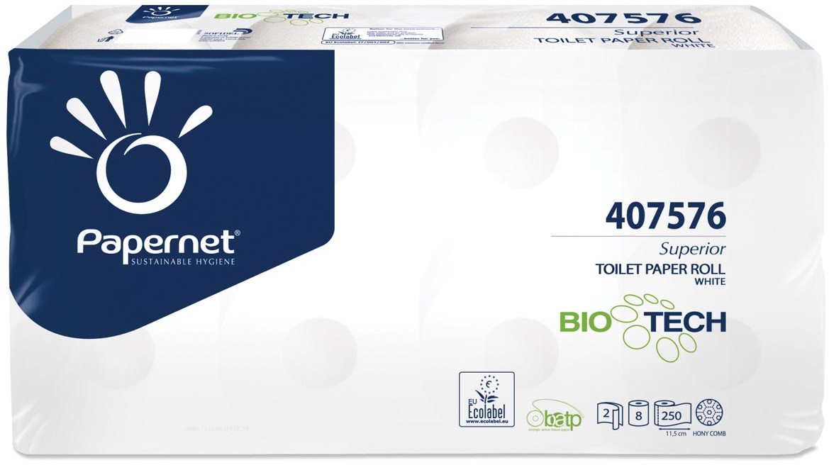 Stel een vraag over Papernet toiletpapier Superior, 2-laags, 250 vellen, pak van 8 rollen