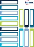 Artikelomschrijving Avery Family mini naametiketten, ft 5 x 1 cm, blauw/groen, ophangbare etui met 30 etiketten