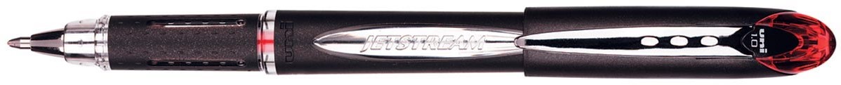Artikelomschrijving Uni-ball roller Jetstream rood, schrijfbreedte 0,45 mm, medium schrift, schrijfpunt 1 mm, zwarte rubbe...