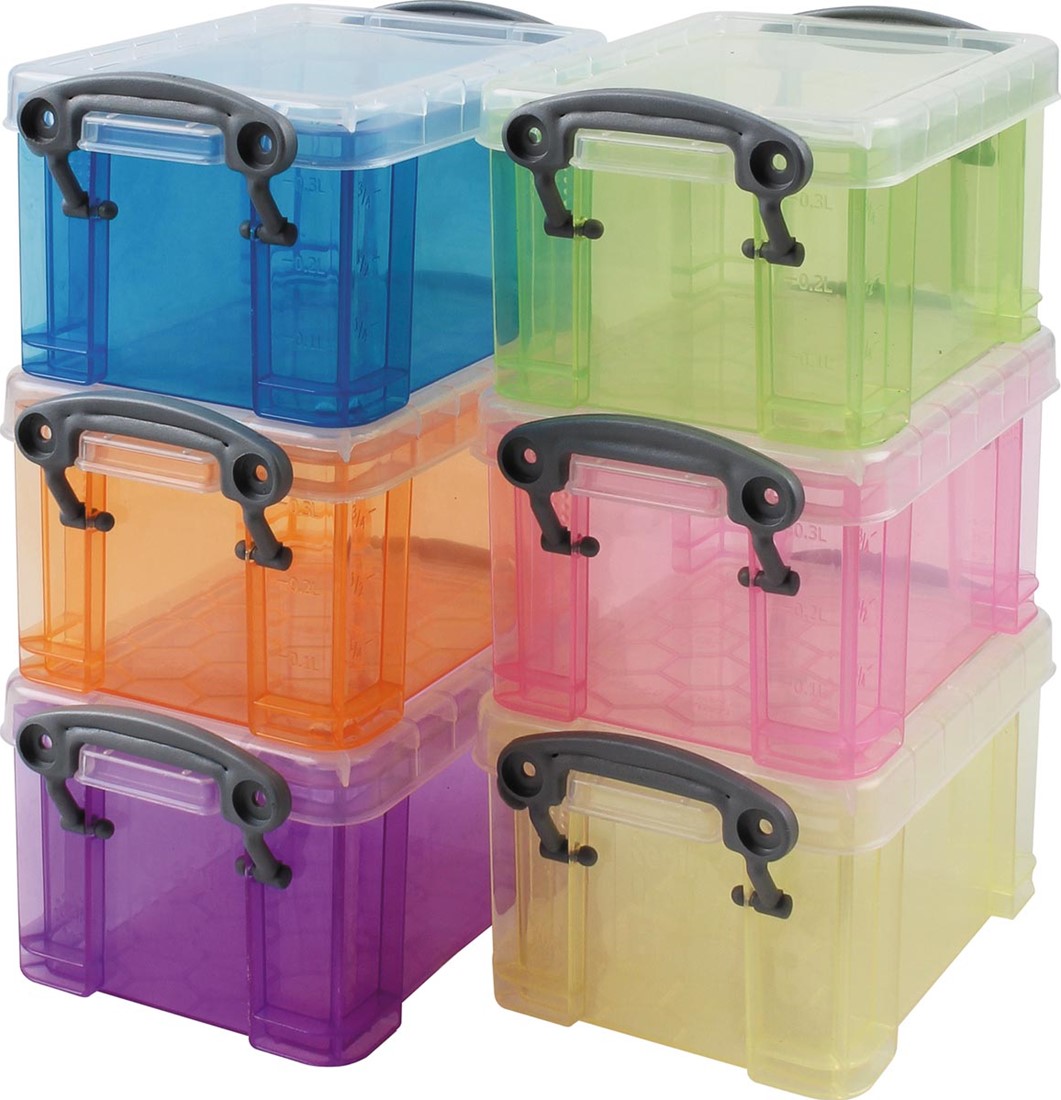 Artikelomschrijving Really Useful Boxes Opbergdoos set van 6 x 0.33 liter assorti kleuren