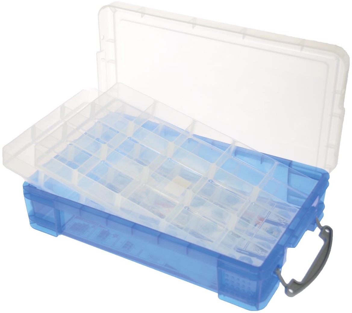 Artikelomschrijving Really Useful Box opbergdoos 4 liter met 2 dividers, transparant blauw