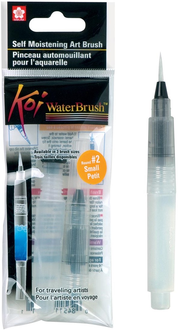 De Koi penseel is een uniek penseel met handig, navulbaar waterreservoir om te aquarelleren. De penseel heeft een fijne nylonpunt om zowel dunne lijnen als grote oppervlaktes te beschilderen. De Koi is bovendien enorm gemakkelijk te onderhouden, schoonmaken met keukenpapier volstaat. Naast gewoon schilderen kan de penseel ook gebruikt worden voor tal van andere fine art toepassingen zoals inkttekeningen, enz. In een plastic ophangetui.