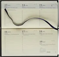 1 week per 2 pagina's Uurindeling (8u - 19u) 6-talig Boekgebonden Crèmekleurig papier van 60 g/m² Horizontale lay-out 14 maanden Met leeslint en scheurhoekjes Kaft uit effen kunstleder Ft 81 x 166 mm