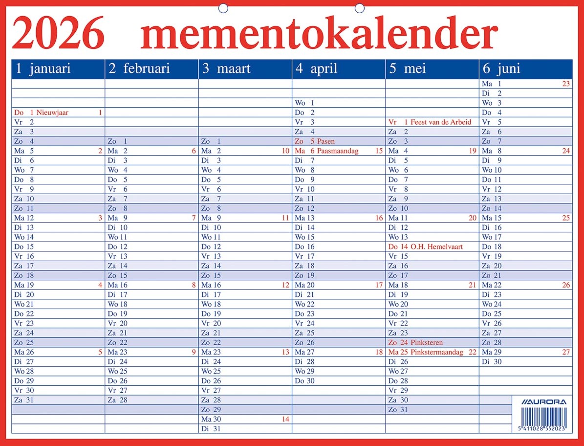 Specificaties Aurora Memento 20 Nederlandstalig, 2026