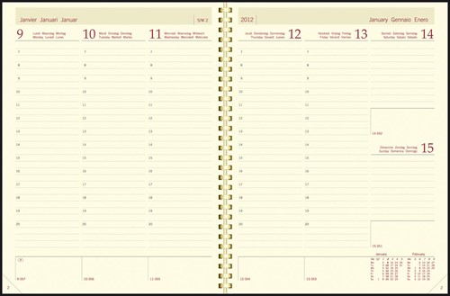 1 week per 2 pagina's 14 maanden Halfuurindeling (7u - 21u) 6-talig Plastiek spiraalbinding Wit papier van 80 g/m² 144 pagina's Met geperforeerde hoeken Onder etui Ft 175 x 225 mm