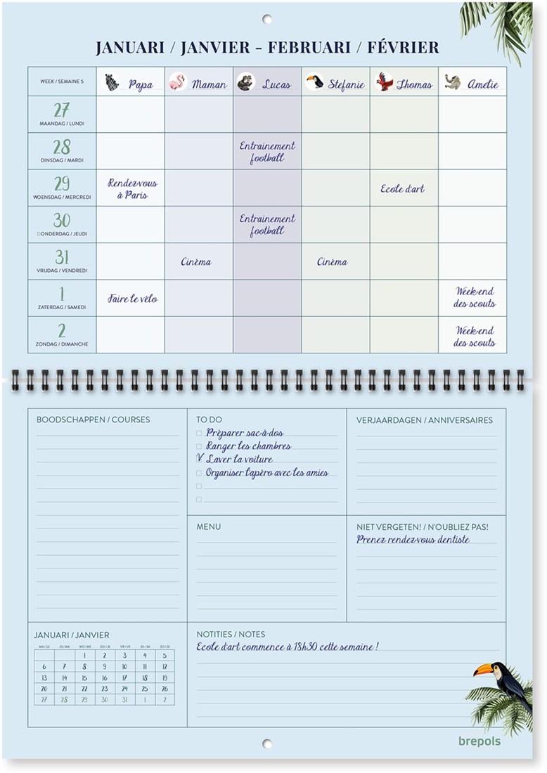 Specificaties Brepols gezinskalender weekoverzicht, Franstalig, 2026