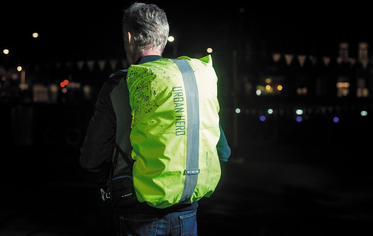Reflecterende band. Waterdichte stof. 2 aantrekbare elastieken. Extra riem op de rugzijde. Met label voor Magnetlight of Multilight. Inhoud: 30-35 liter. Kleur: geel.