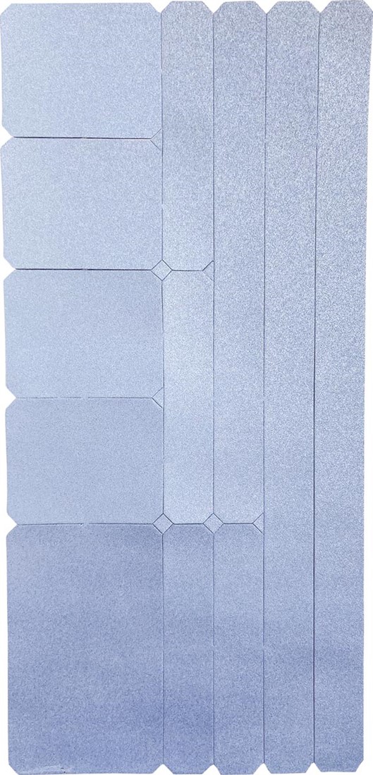 Sterk reflecterend 3M materiaal. Voorgesneden vormen. Kleefbaar op diverse ondergronden. Uiterst sterke kleeflaag. Totaal formaat: 8,5 x 18 cm. Kleur: zilver.