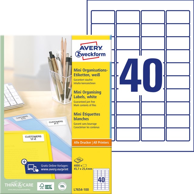 Stel een vraag over Etiket Avery L7654-100 45.7x25.4mm wit 4000 etiketten