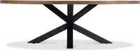 Wilt u een ovale mangohout tafel kopen als vergadertafel of als eettafel? Dan is deze mangohout tafel met matrixpoot misschien iets voor u? De Matrix poot geeft de tafel een moderne look en het blad is gemaakt van duurzaam mangohout welke goed bestand is tegen vlekken.