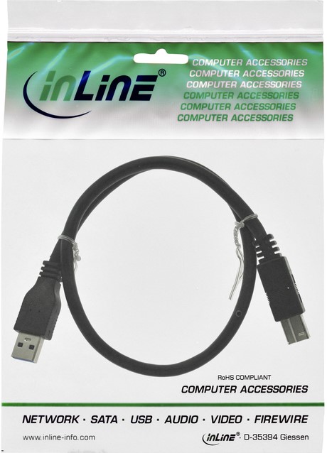 Stel een vraag over Kabel Inline USB-A USB-B 3.0 M 0.5 meter zwart