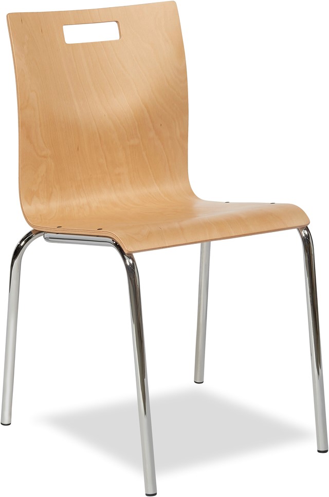 Deze strak vormgegeven stoel geeft de ruimte een moderne uitstraling en brengt eenheid en rust binnen het geheel. Zeer praktisch in gebruik door handvat in de schaal.Deze stapelbare stoel is stapelbaar tot maximaal 8 stoelen. De kuip is van multiplex in transparante lak.