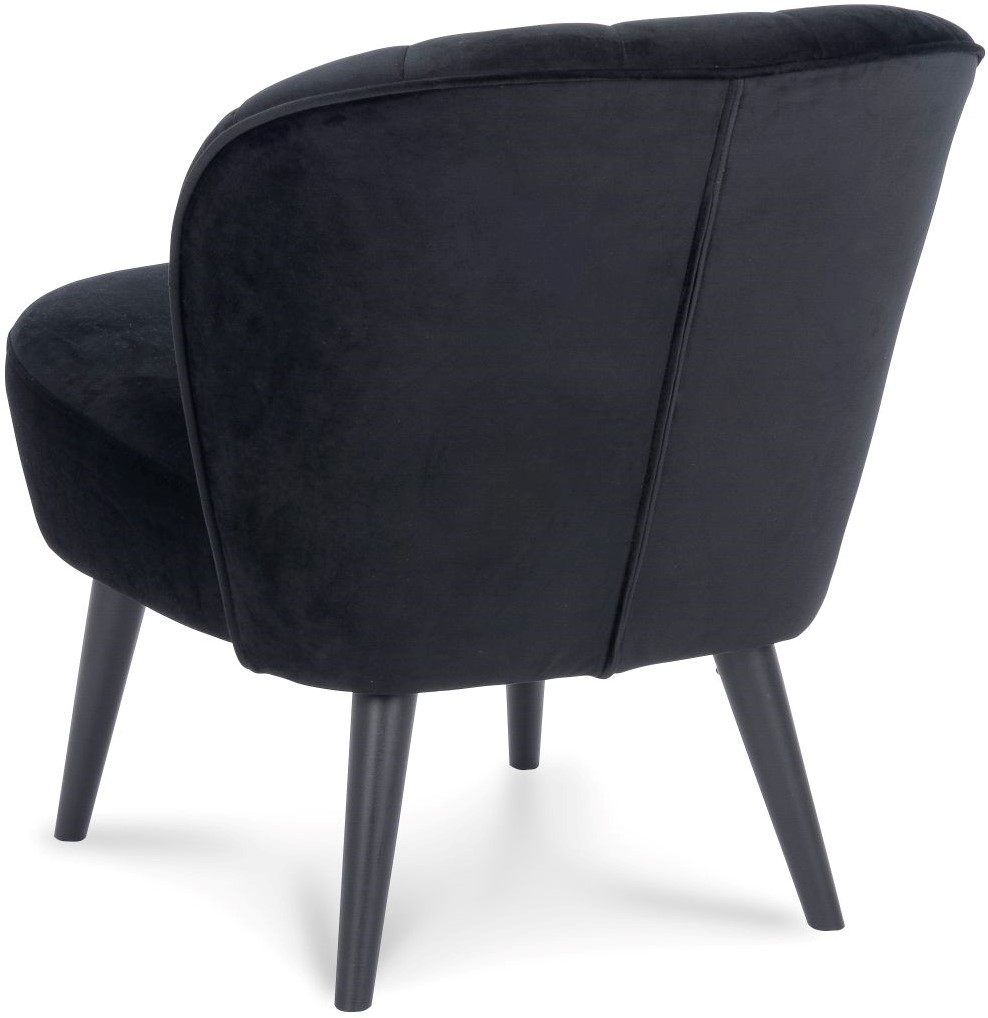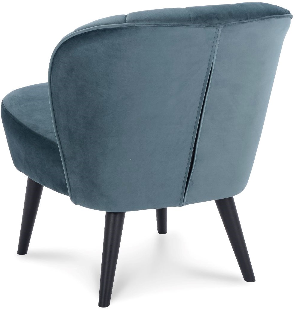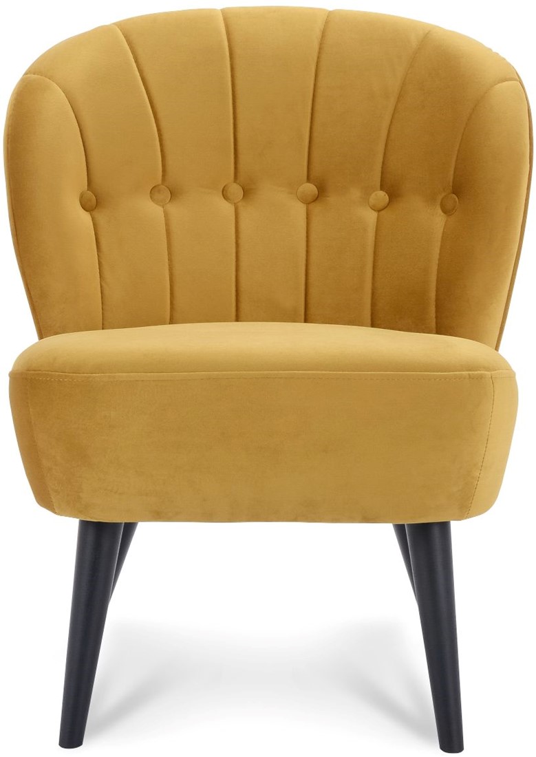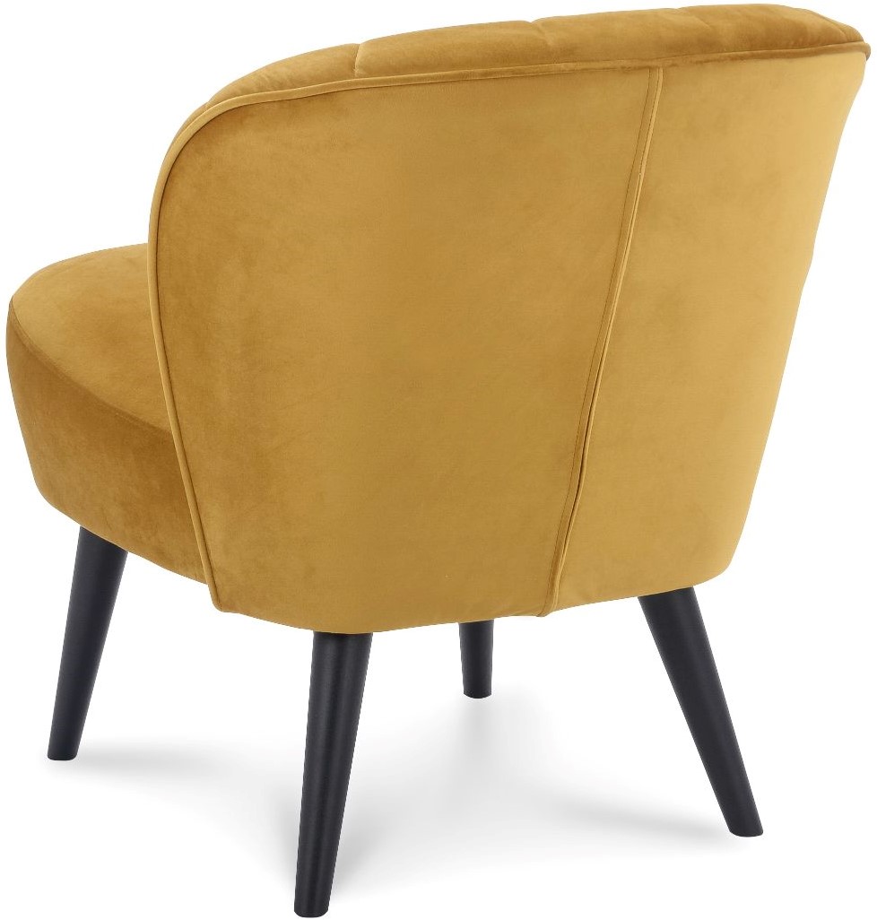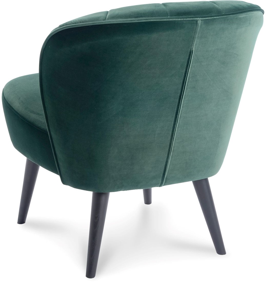 • De Selon is een leuke fauteuil met ronde vormen en een 4-poot frame. De stoel heeft een stikking met verticale lijnen en buttons in de rugleuning.